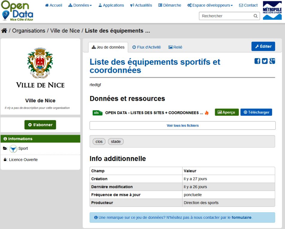 Le portail Open Data de Nice Côte d’Azur utilise plusieurs formats de données: